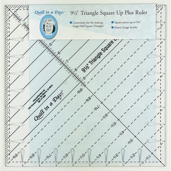 This new and improved Triangle Square Up Ruler makes perfect half triangle squares or quarter triangle squares in half the time. Features tip grooves to trim tips at 1″ & 1/2″ increments. Squares patches up to 6-1/2″ • *Quilt in a Day Rulers, Templates and Notions may not be sold on Amazon, to Amazon, or to unauthorized third parties that resell on Amazon.*
